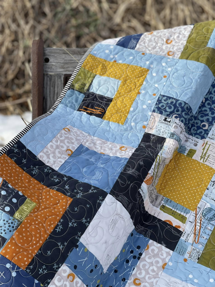 Hanne har sydd en quilt med utgangspunkt i denne Layer caken. Hun har i tillegg brukt 3 stoffer på 25cm for å få teppet litt større,